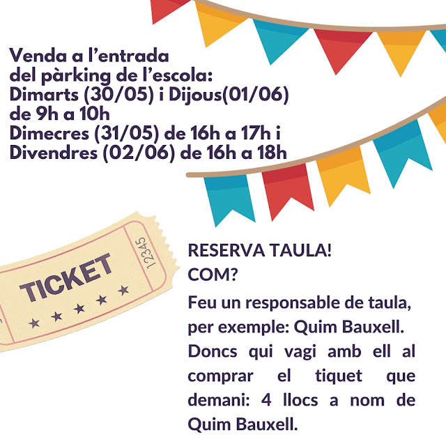 Es farà al pati de l'escola, a partir de les 16:30h. Us adjuntem un pdf amb tota la informació . Es faran diversos tallers i activitats 🎨🎭♟️🧘🏻♀️🎽🌳. És un acte gratuït i obert a totes les famílies de l'escola. També us passem un ENLLAÇ per tal de saber el nombre d'alumnes que volen venir i poder fer una previsió de tot el material necessari per aquest dia.